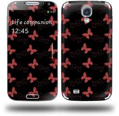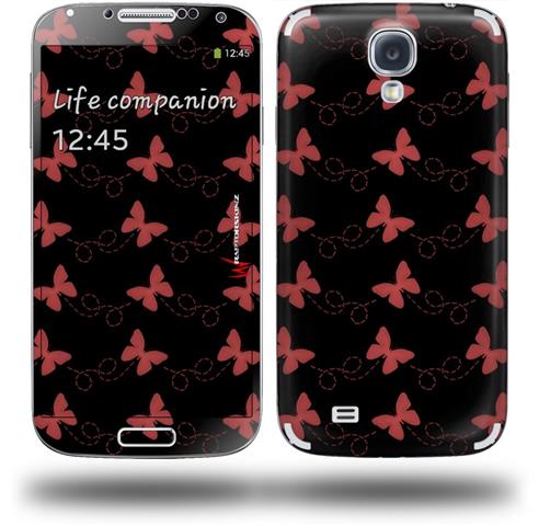 Pastel Butterflies Red on Black - Decal Style Skin (fits Samsung Galaxy S IV S4)