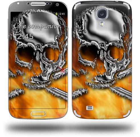 Chrome Skull on Fire - Decal Style Skin (fits Samsung Galaxy S IV S4)
