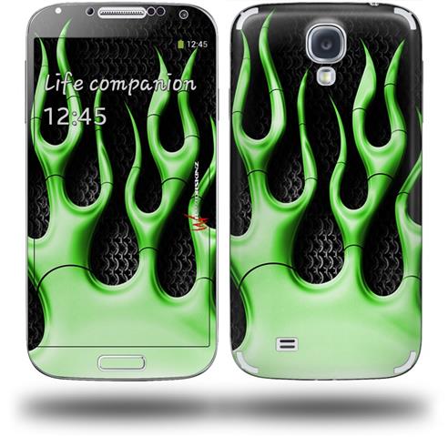 Metal Flames Green - Decal Style Skin (fits Samsung Galaxy S IV S4)