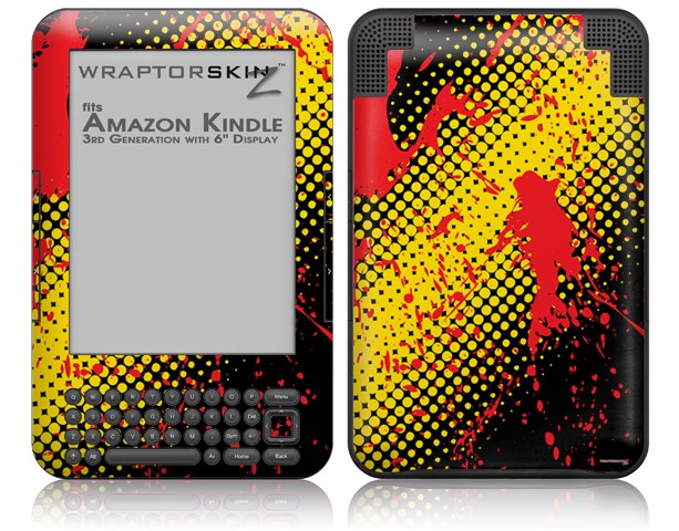 Halftone Splatter Yellow Red - Decal Style Skin fits Amazon Kindle 3 Keyboard (with 6 inch display)