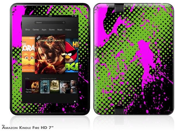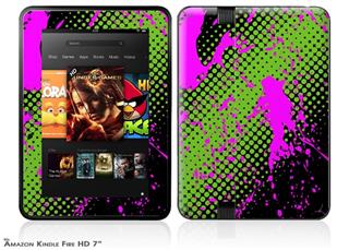 Halftone Splatter Hot Pink Green Decal Style Skin fits 2012 Amazon Kindle Fire HD 7 inch