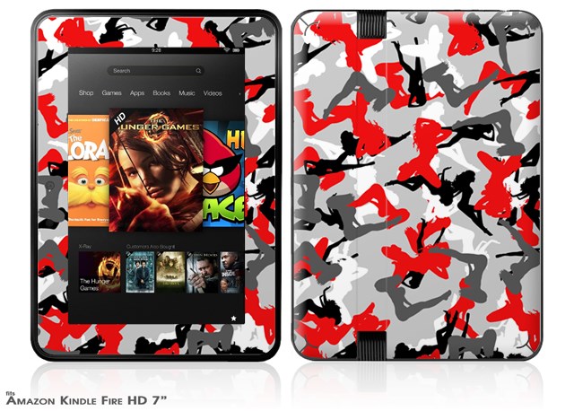 Sexy Girl Silhouette Camo Red Decal Style Skin fits 2012 Amazon Kindle Fire HD 7 inch