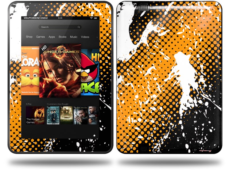 Halftone Splatter White Orange Decal Style Skin fits Amazon Kindle Fire HD 8.9 inch