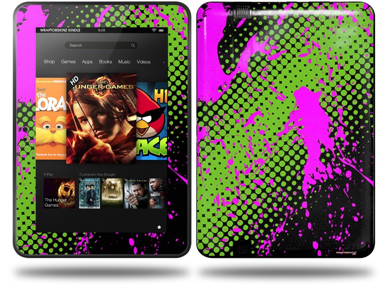 Halftone Splatter Hot Pink Green Decal Style Skin fits Amazon Kindle Fire HD 8.9 inch
