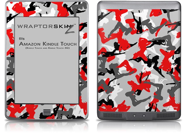 Sexy Girl Silhouette Camo Red - Decal Style Skin (fits Amazon Kindle Touch Skin)