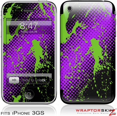 iPhone 3GS Decal Style Skin - Halftone Splatter Green Purple