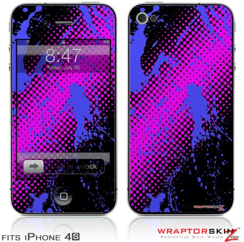 iPhone 4S Skin Halftone Splatter Blue Hot Pink