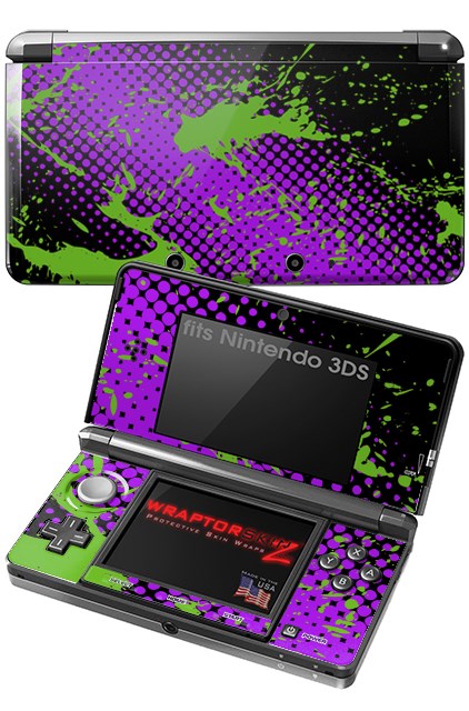 Nintendo 3DS Decal Style Skin - Halftone Splatter Green Purple