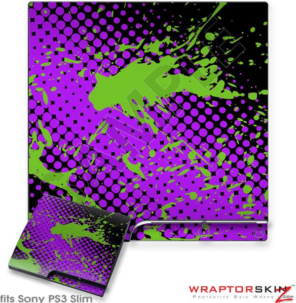 Sony PS3 Slim Skin Halftone Splatter Green Purple