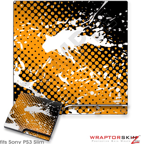 Sony PS3 Slim Skin Halftone Splatter White Orange