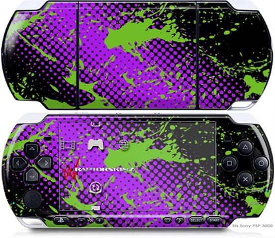 Sony PSP 3000 Decal Style Skin - Halftone Splatter Green Purple