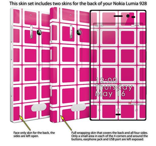 Squared Fushia Hot Pink - Decal Style Skin (fits Nokia Lumia 928)