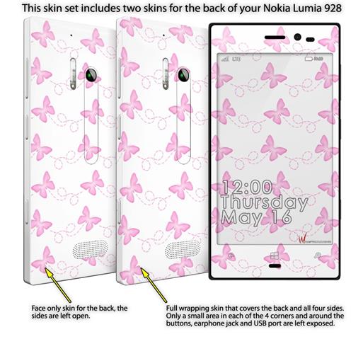 Pastel Butterflies Pink on White - Decal Style Skin (fits Nokia Lumia 928)