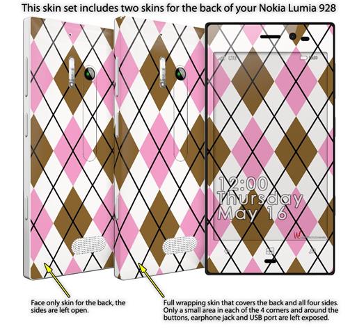 Argyle Pink and Brown - Decal Style Skin (fits Nokia Lumia 928)