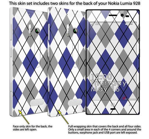 Argyle Blue and Gray - Decal Style Skin (fits Nokia Lumia 928)