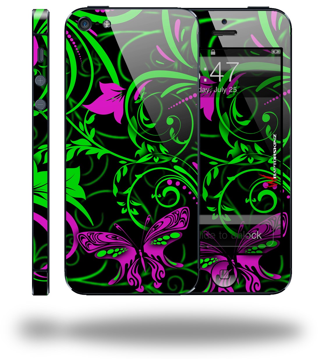 Twisted Garden Green and Hot Pink - Decal Style Vinyl Skin (compatible with Apple Original iPhone 5, NOT the iPhone 5C or 5S)