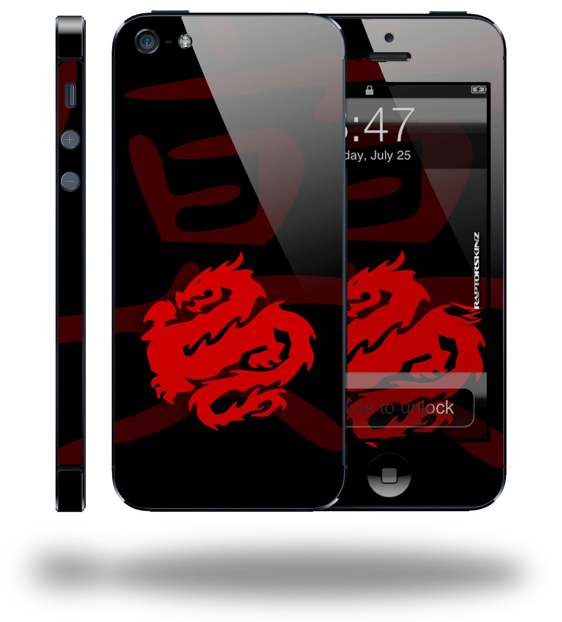 Oriental Dragon Red on Black - Decal Style Vinyl Skin (compatible with Apple Original iPhone 5, NOT the iPhone 5C or 5S)