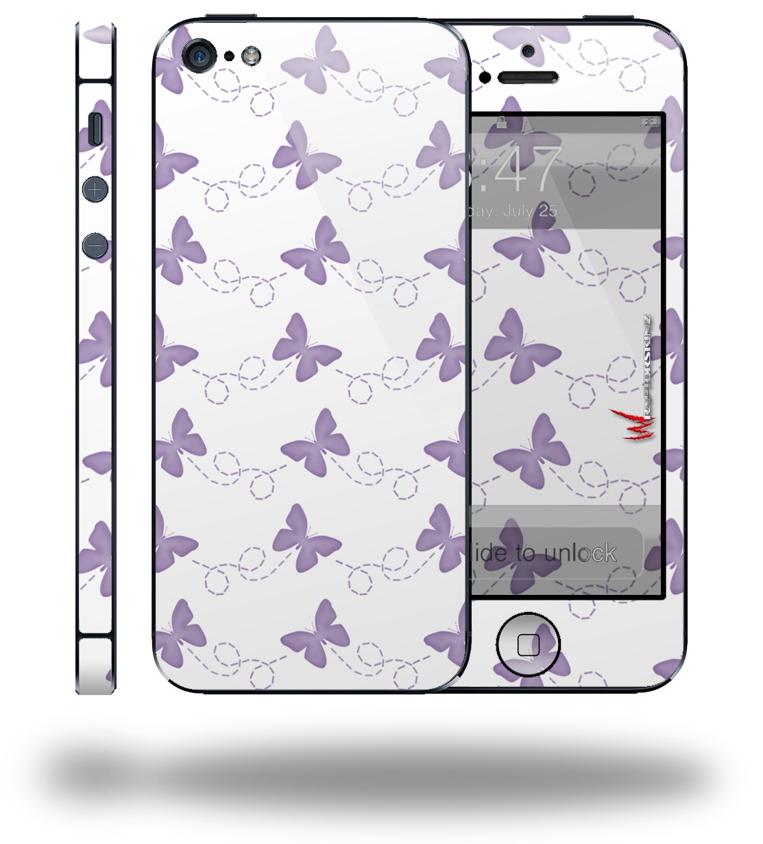 Pastel Butterflies Purple on White - Decal Style Vinyl Skin (compatible with Apple Original iPhone 5, NOT the iPhone 5C or 5S)