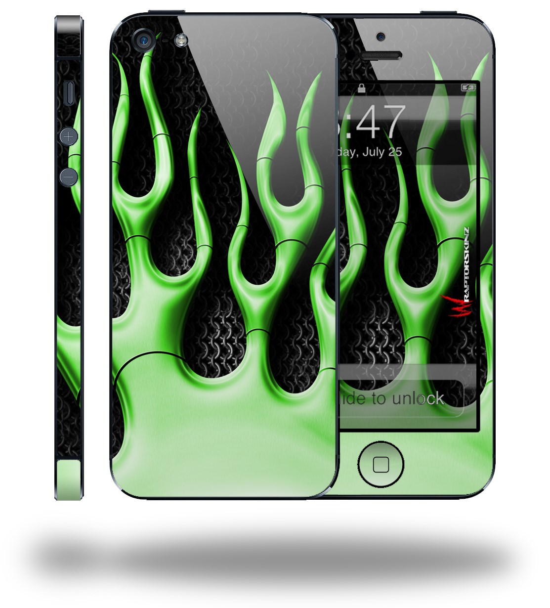 Metal Flames Green - Decal Style Vinyl Skin (compatible with Apple Original iPhone 5, NOT the iPhone 5C or 5S)