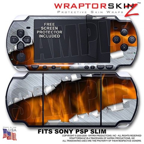 Ripped Metal Fire WraptorSkinz ™ Decal Style Skin fits Sony PSP Slim (PSP 2000)