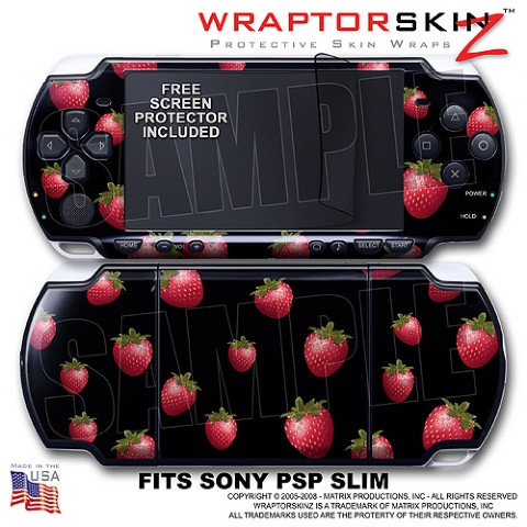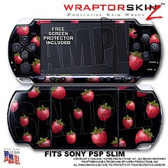 Strawberries on Black WraptorSkinz ™ Decal Style Skin fits Sony PSP Slim (PSP 2000)