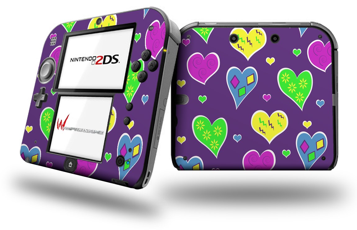 Crazy Hearts - Decal Style Vinyl Skin fits Nintendo 2DS - 2DS NOT INCLUDED