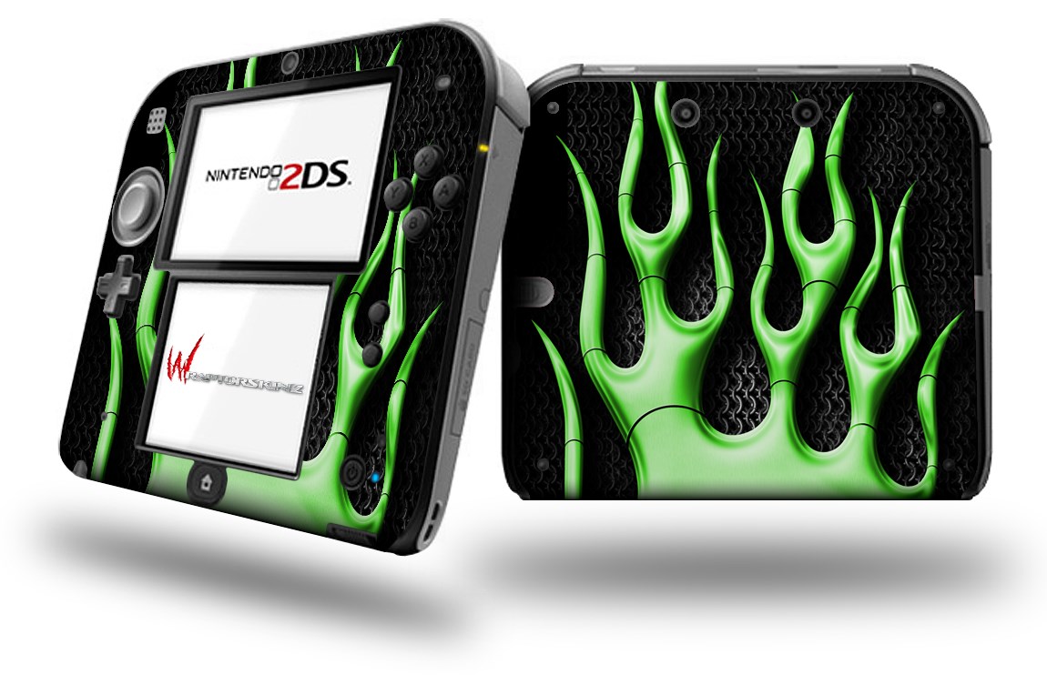 Metal Flames Green - Decal Style Vinyl Skin fits Nintendo 2DS - 2DS NOT INCLUDED