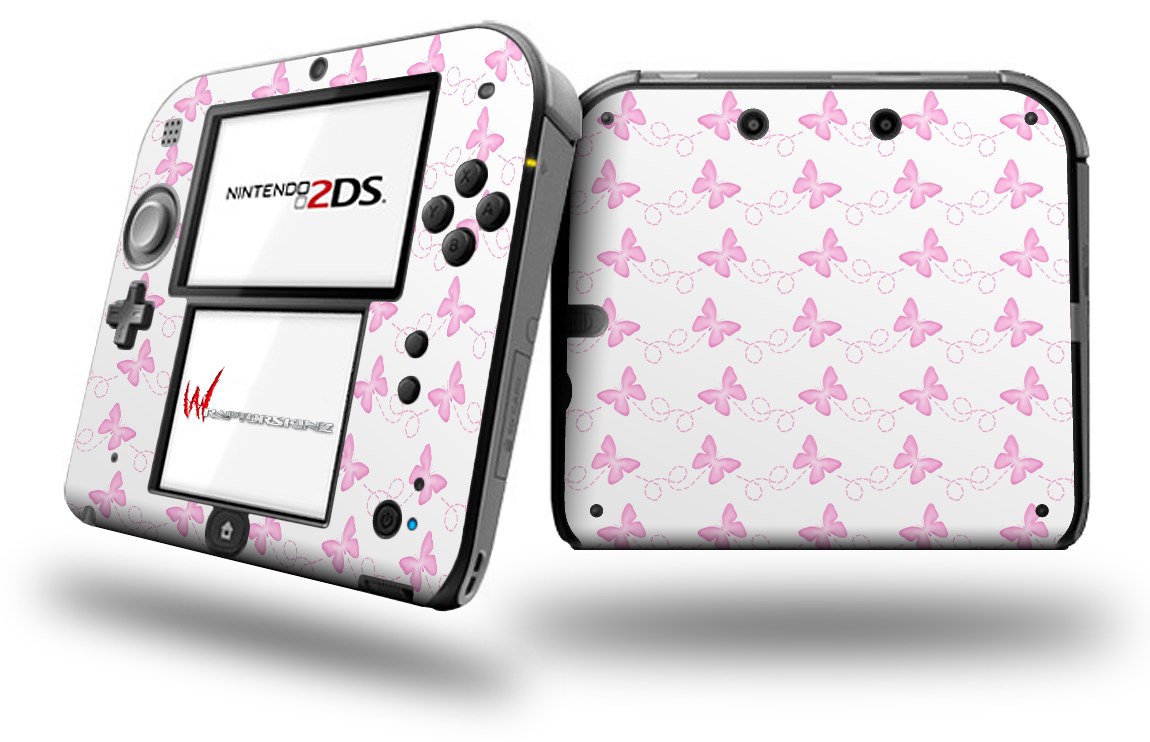 Pastel Butterflies Pink on White - Decal Style Vinyl Skin fits Nintendo 2DS - 2DS NOT INCLUDED