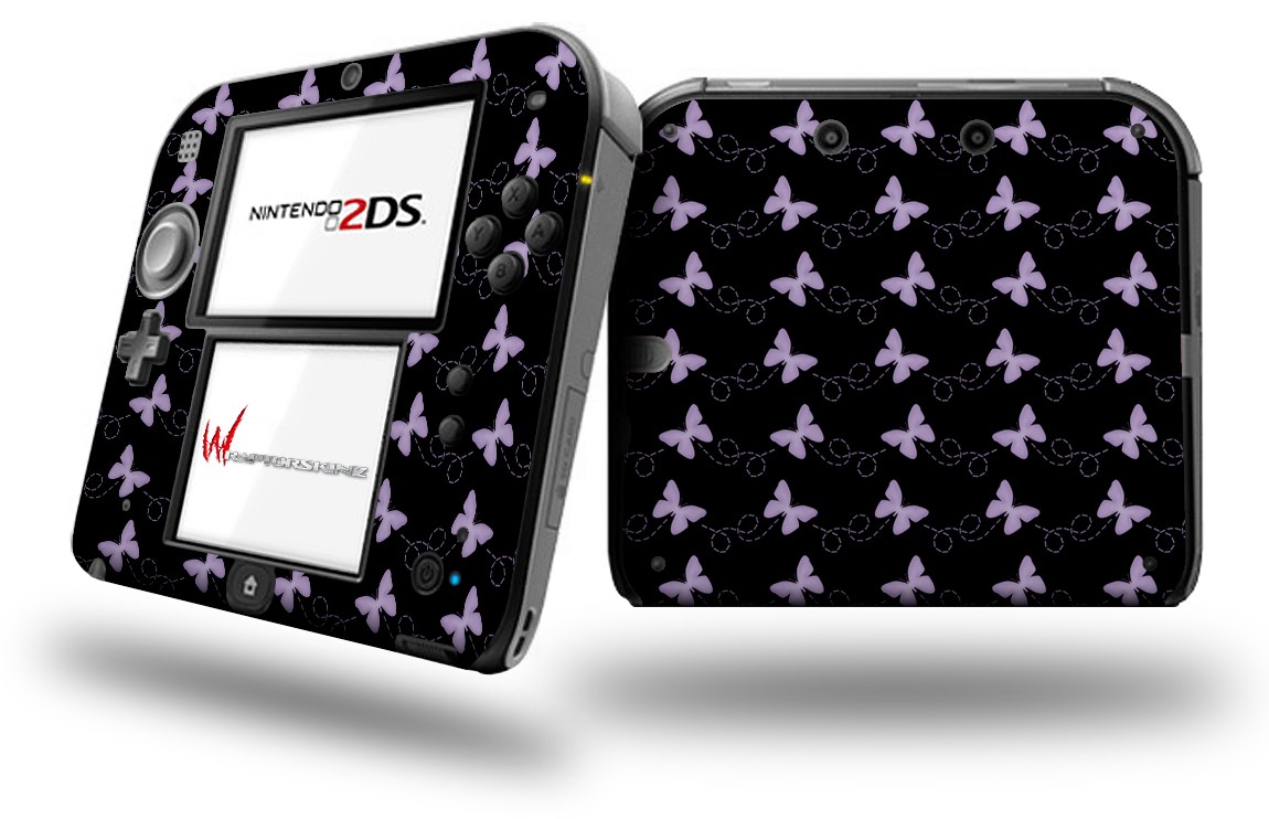 Pastel Butterflies Purple on Black - Decal Style Vinyl Skin fits Nintendo 2DS - 2DS NOT INCLUDED