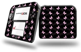 Pastel Butterflies Pink on Black - Decal Style Vinyl Skin fits Nintendo 2DS - 2DS NOT INCLUDED