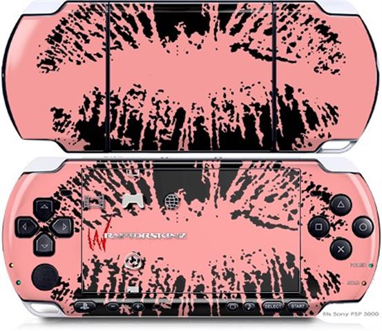 Sony PSP 3000 Decal Style Skin - Big Kiss Lips Black on Pink