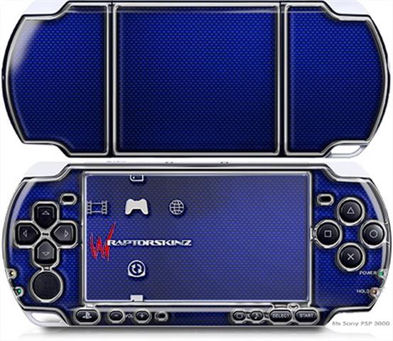 Sony PSP 3000 Decal Style Skin - Carbon Fiber Blue and Chrome