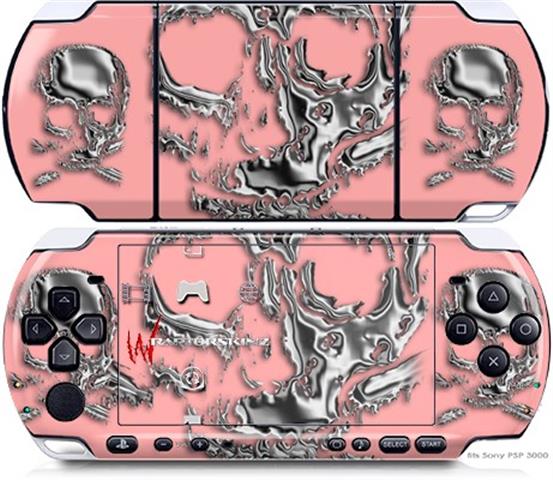 Sony PSP 3000 Decal Style Skin - Chrome Skulls on Pink