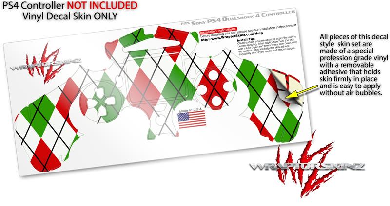 WraptorSkinz Skin compatible with Sony PS4 Dualshock Controller PlayStation 4 Original Slim and Pro Argyle Red and Green (CONTROLLER NOT INCLUDED)