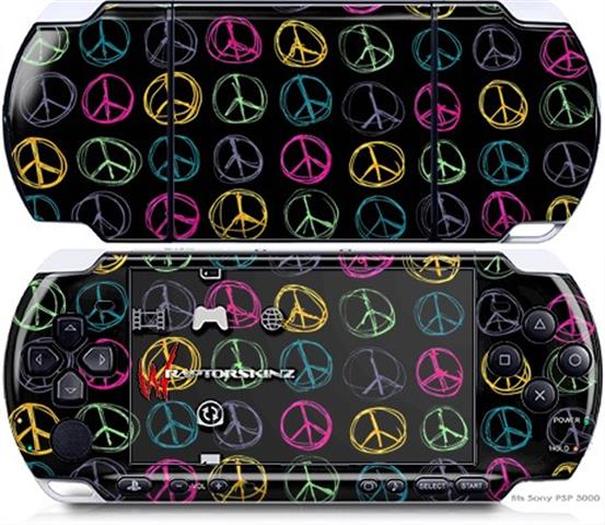 Sony PSP 3000 Decal Style Skin - Kearas Peace Signs on Black