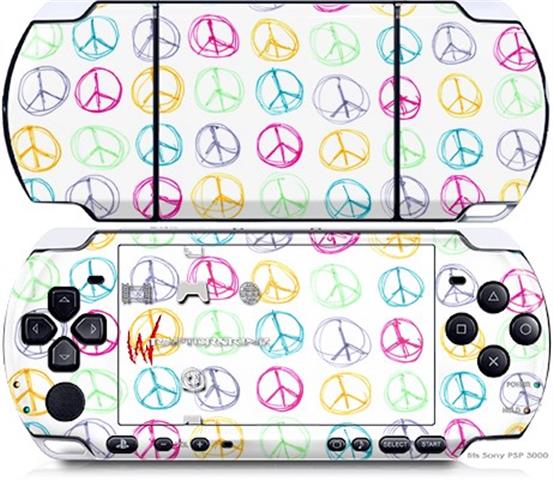 Sony PSP 3000 Decal Style Skin - Kearas Peace Signs on White