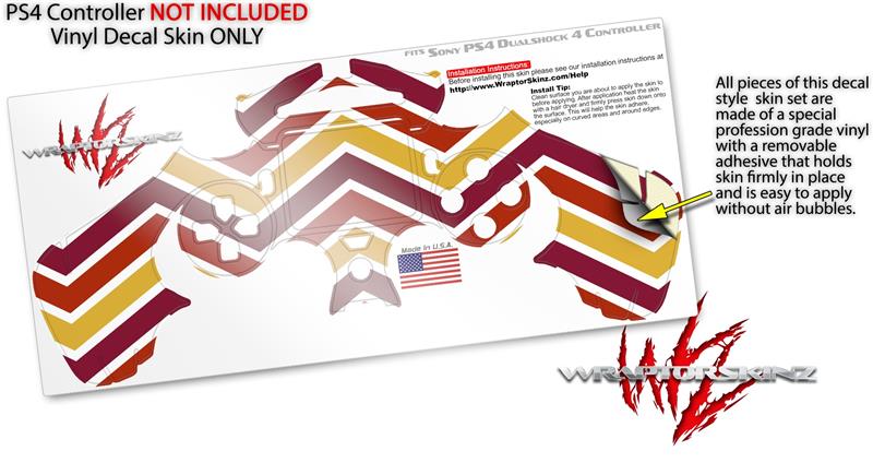 WraptorSkinz Skin compatible with Sony PS4 Dualshock Controller PlayStation 4 Original Slim and Pro Zig Zag Yellow Burgundy Orange (CONTROLLER NOT INCLUDED)