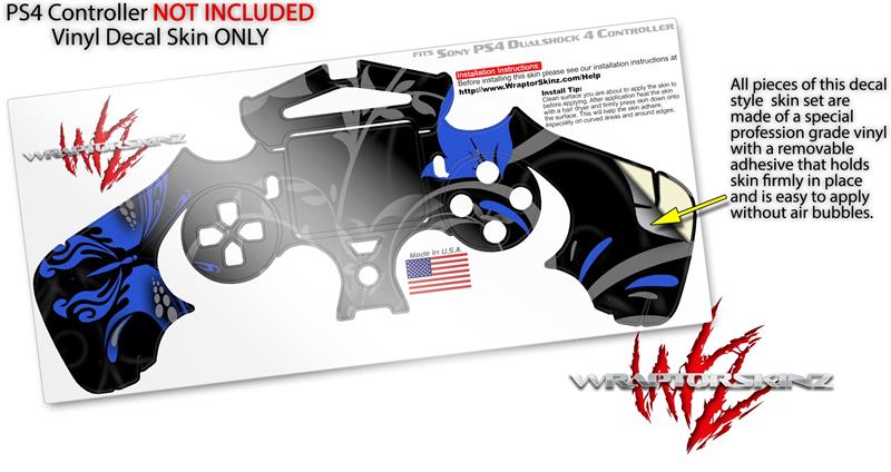 WraptorSkinz Skin compatible with Sony PS4 Dualshock Controller PlayStation 4 Original Slim and Pro Twisted Garden Gray and Blue (CONTROLLER NOT INCLUDED)