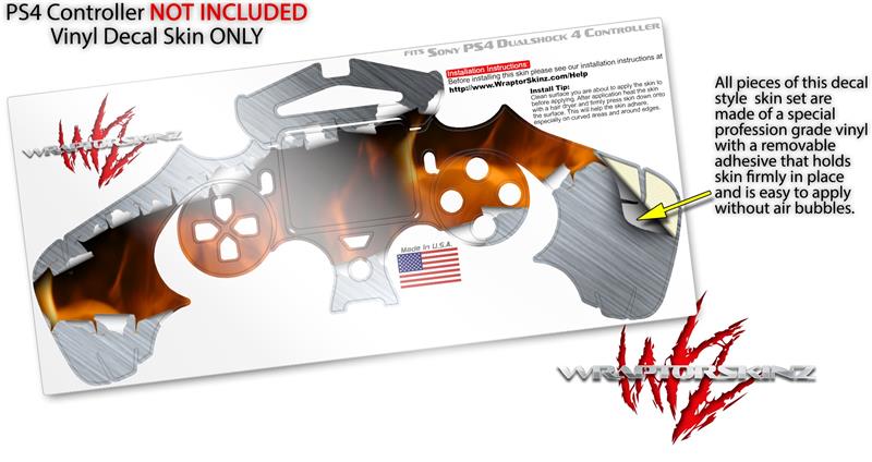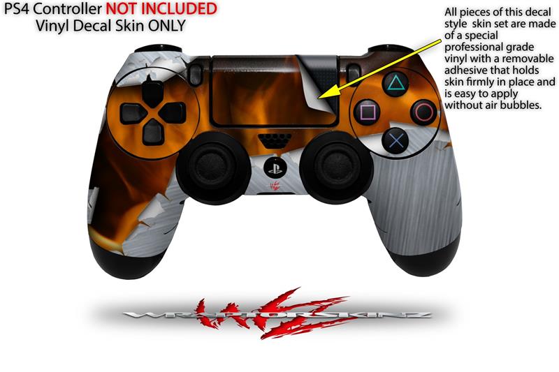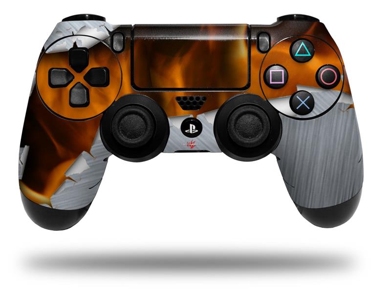 WraptorSkinz Skin compatible with Sony PS4 Dualshock Controller PlayStation 4 Original Slim and Pro Ripped Metal Fire (CONTROLLER NOT INCLUDED)