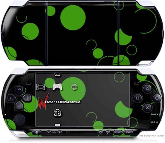 Sony PSP 3000 Decal Style Skin - Lots of Dots Green on Black