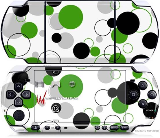 Sony PSP 3000 Decal Style Skin - Lots of Dots Green on White