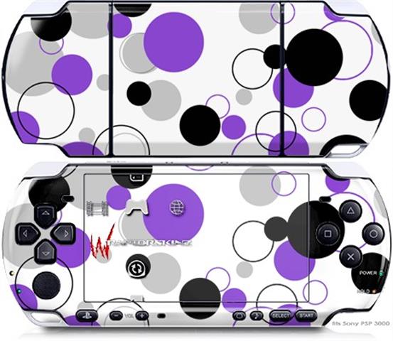 Sony PSP 3000 Decal Style Skin - Lots of Dots Purple on White