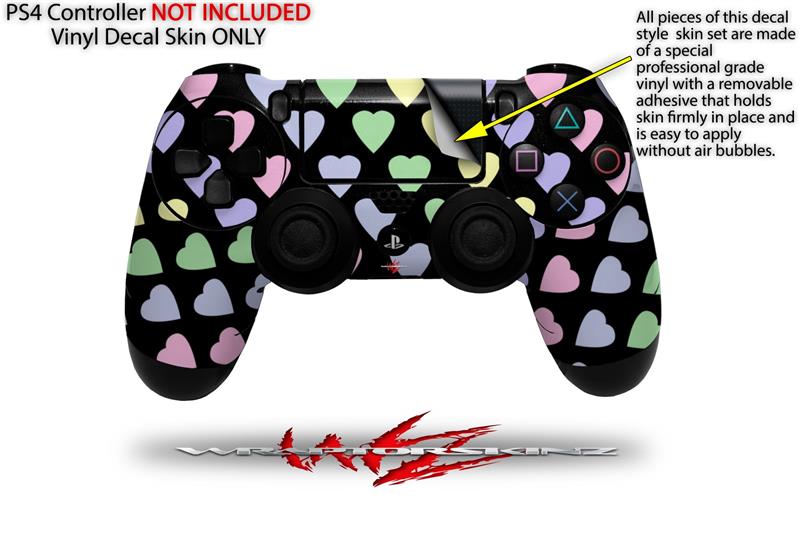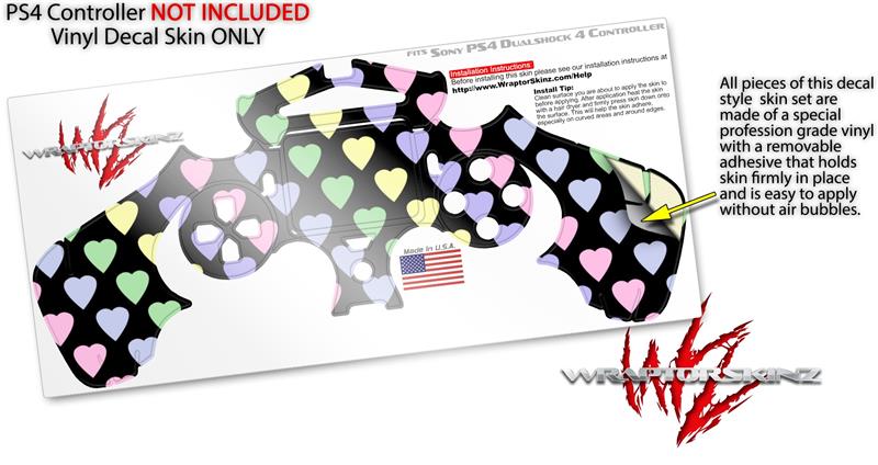 WraptorSkinz Skin compatible with Sony PS4 Dualshock Controller PlayStation 4 Original Slim and Pro Pastel Hearts on Black (CONTROLLER NOT INCLUDED)