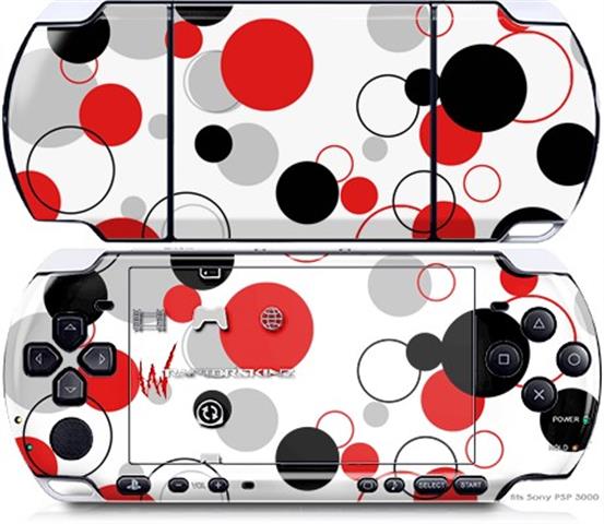 Sony PSP 3000 Decal Style Skin - Lots of Dots Red on White