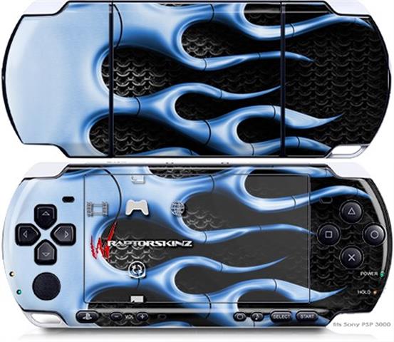 Sony PSP 3000 Decal Style Skin - Metal Flames Blue