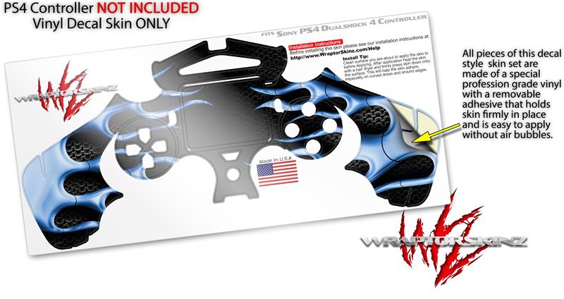 WraptorSkinz Skin compatible with Sony PS4 Dualshock Controller PlayStation 4 Original Slim and Pro Metal Flames Blue (CONTROLLER NOT INCLUDED)