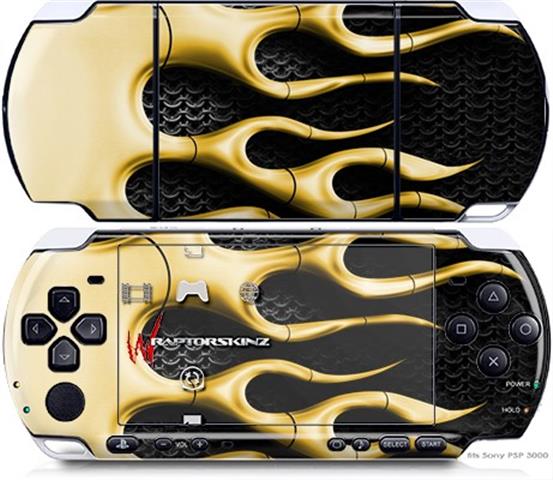 Sony PSP 3000 Decal Style Skin - Metal Flames Yellow