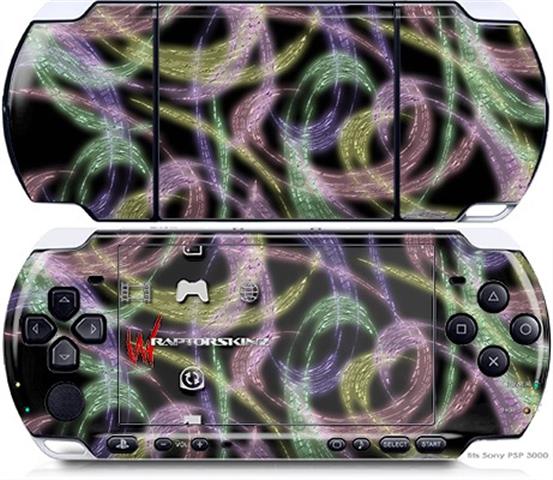 Sony PSP 3000 Decal Style Skin - Neon Swoosh on Black
