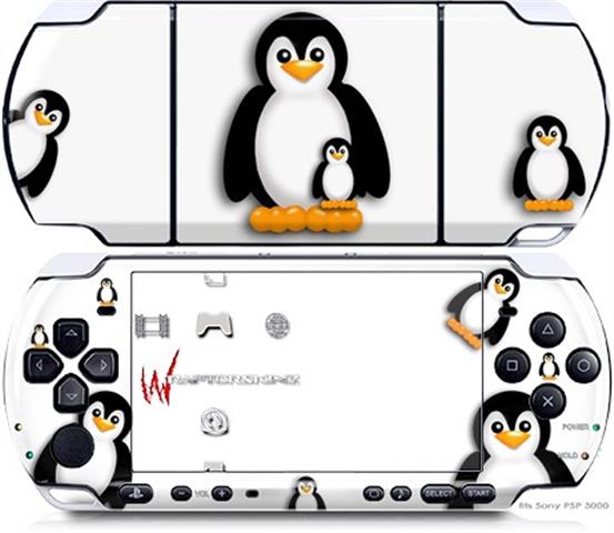 Sony PSP 3000 Decal Style Skin - Penguins on White
