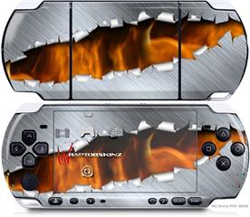 Sony PSP 3000 Decal Style Skin - Ripped Metal Fire